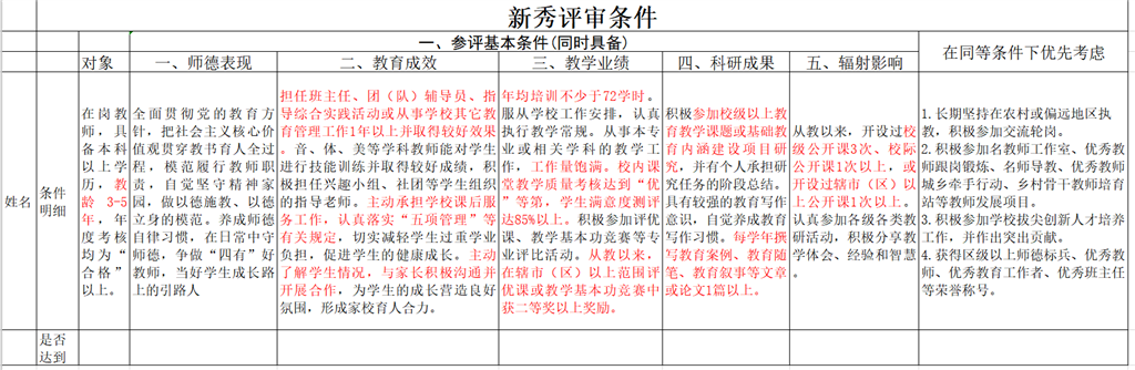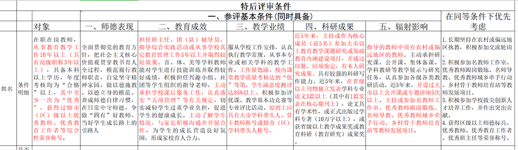 各位老师,2021年第八批常州市中小学特级教师后备人才和第十批中小学教坛新秀和教学能手评选文件已出,时间紧任务重,为保证老师们顺利申报,几点提醒: 一.申报条件 二.申报时间 2021年11月26日-2021年12月1日 1.第八批常州市中小学特级教师后备人才评选(常教人〔2021〕44号附件): (1)对照条件(附件1),填写《常州市中小学特级教师后备人才呈报表》(附件2中的附件3),打印 (2)按照《第八批常州市中小学特级教师后备人才推荐材料目录》(附件2中的附件4)准备材料 (3)填写《第八批常州市中小学特级教师后备人才推荐人选汇总名册》(附件3)(电子稿) 11月30日下班前将所有材料交教师发展处张志辉 2.第十批中小学教坛新秀和教学能手评选(常教人〔2021〕45号附件): (1)对照条件(附件1),填写《第十批常州市中小学教坛新秀(能手)推荐呈报表》(附件2中的附件4)(附件)打印 (2)按照《第十批常州市中小学教坛新秀、教学能手推荐材料目录》(附件2中的附件2)准备材料 (3)填写《第十批常州市中小学教坛新秀、教学能手推荐人选汇总名册》(附件3)(电子稿) 11月30日下班前将所有材料交教师发展处张志辉 朝阳中学教师发展处 2021年11月26日 |