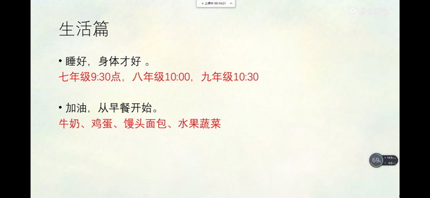 殷校长以“陪着孩子,从春天走向更好的明天”为题,传递孩子的身心健康与家长的悉心陪伴息息相关。殷校长从生活、修养、学业、亲子关系等四个角度阐述“初中阶段是父母影响力的黄金阶段,也可能是父母最后的机会”,他认为孩子初中时候的“性情大变”源自青春期生理心理变化”,面对孩子叛逆,家长也不要大惊小怪,忧心忡忡,它是有一定积极意义。他向家长提出六条建议:每天花15分钟跟孩子交流;不要为了提醒孩子,而总是揭孩子的伤疤;从不说孩子比别的孩子差;绝不当众批评和嘲笑孩子;随时关注孩子的进步,让他(她)知道自己在进步;常换位思考:假如我是孩子,我将会怎样?居家学习时,孩子的心理健康与家长更是紧密相连,殷校长的讲座恰如及时雨,为本次居家学习提供了高位、细致的亲子指导,有效地抚平了家长们的焦虑心情。