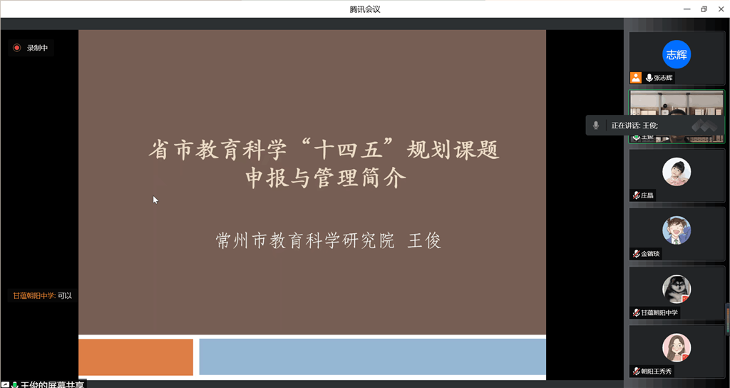 暑假伊始,朝阳中学全体教师齐聚云端,开启了暑假教师研修的第一段——教育科研能力专题培训。活动有幸邀请到了常州市教科院王俊博士就教育科研做了一场精彩的专题培训讲座